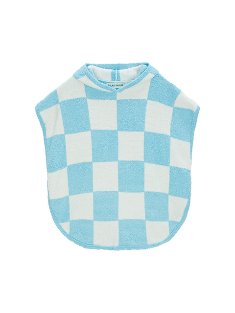 [샐러드바구니] 체커 후드 케이프 타월 판초_스카이블루