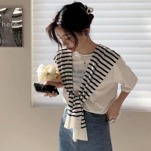 스트라이프 니트 여성 가디건 머플러 케이프 숄 스카프 WFLOP5O