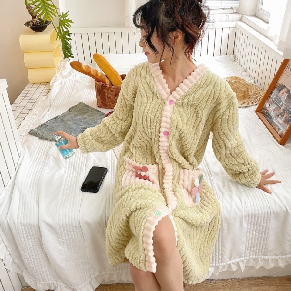 여성 수면잠옷 극세사 겨울 로브 홈웨어 원피스 잠옷