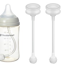 1+1 추형-빨대캡 2개+빨대솔1개 더블하트 젖병 호환 빨대컵 전환 사용