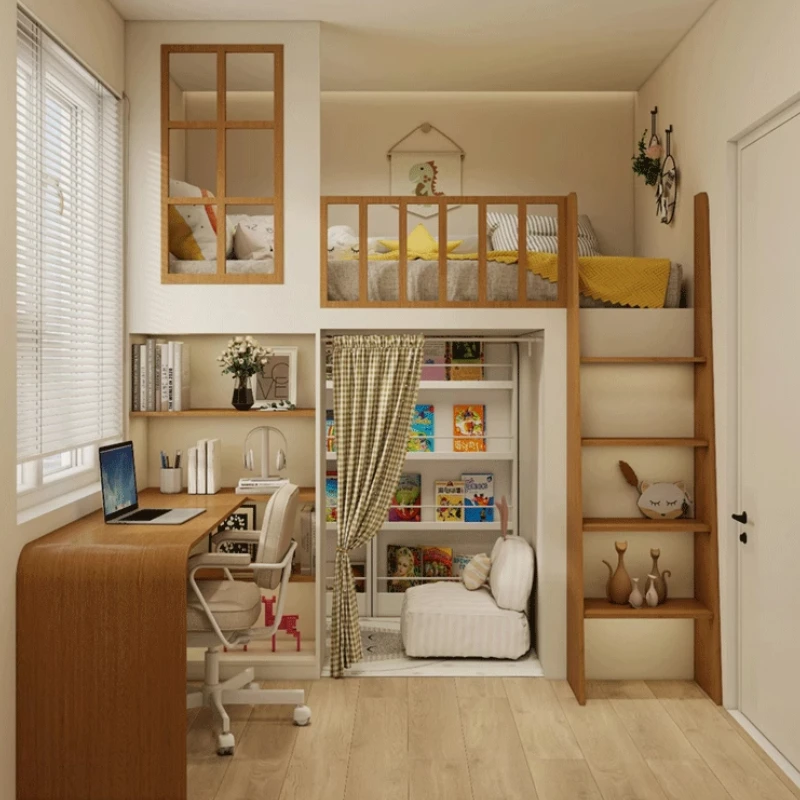 원목 사다리 침대 가정 다층 계단 학생 다락형 침대