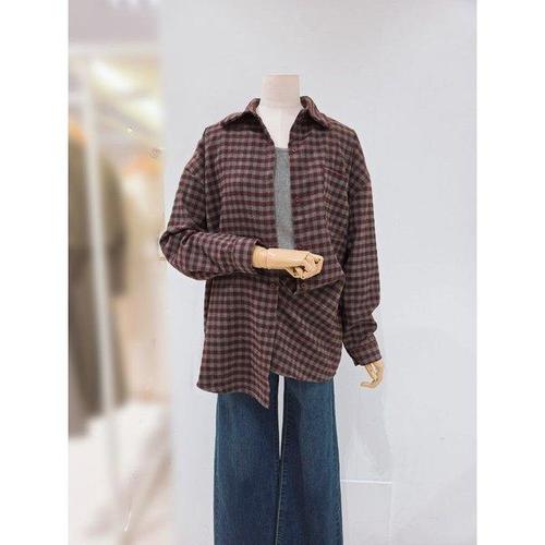 [숲]뒤 티셔츠 배색 체크 셔츠 SB8LS34