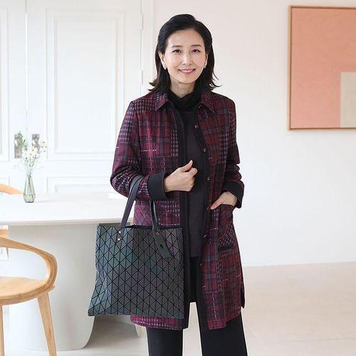 [쉬즈마담]J31721 간절기에 딱 배색 체크롱자켓 50대엄마옷