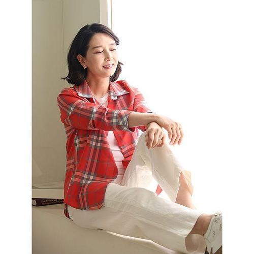 [쉬즈마담]J31795 여행의 설렘 자수 체크남방 50대 엄마옷
