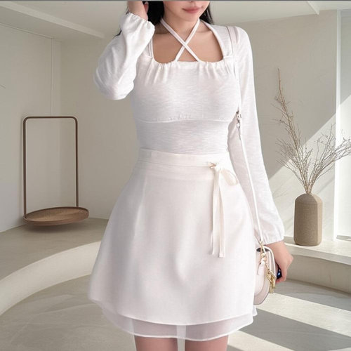 [신상오픈런]여성 리본 장식 더블레이드 쉬폰 랩 미니 스커트