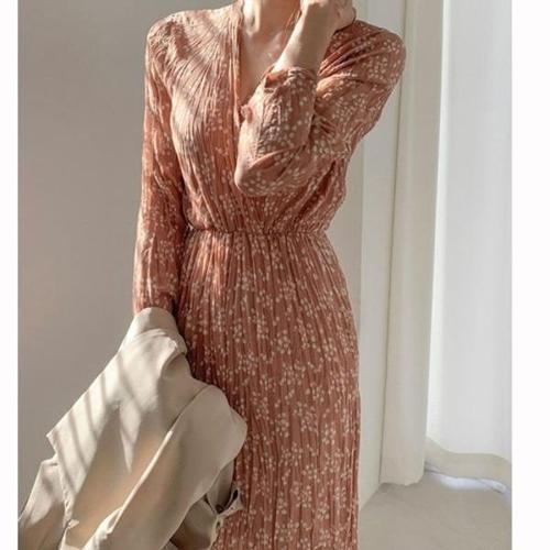 [엄지척]랩스커트 여성 플라워 쉬폰 셔링 브이넥 롱 원피스_19909873_667501