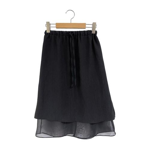 [샵앤][샵앤] 국산 여성 밴딩 쉬폰 레이어드 미디 스커트 STJ-WSK-4870-블랙