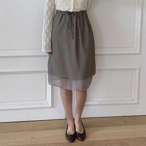 샵앤) 국산 여성 리본밴딩 쉬폰 레이어드 미디 스커트 STJ-WSK-4870-카키