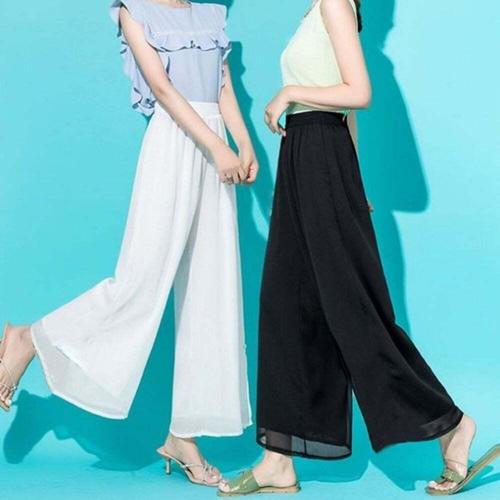 빛깃닥 여성용 더블 레이어 쉬폰 원사 바지 신축성있는 허리 와이드 레그 팬츠 하이 웨이스트 플로리 팬츠 스커트