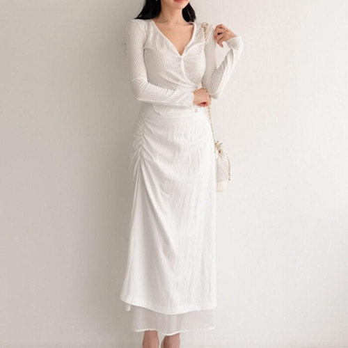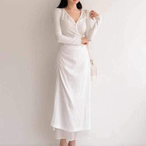 [옷자락]여성 클래식 레이온 쉬폰 사이드 셔링 롱 스커트