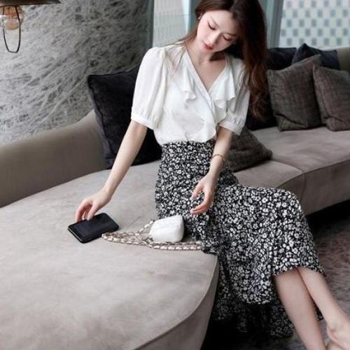TEMU 여성을 위한 우아한 미디 기장 A라인 스커트입니다. 플로럴 프린트와 레이어드 쉬어 헴이 특징이며, 모든 계절에 적합합니다.