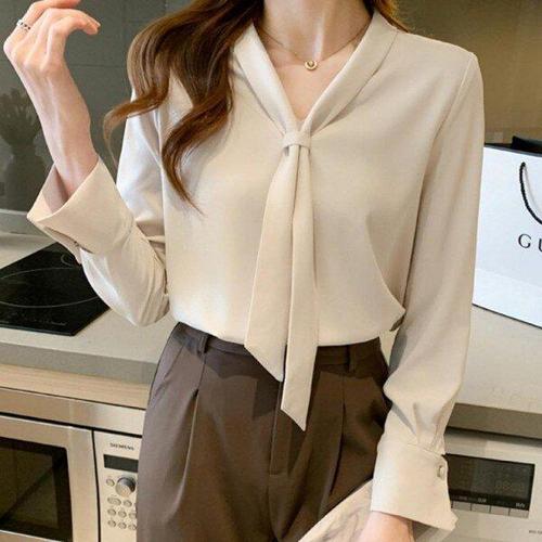 [모노무드]MNO 레이디스 리본디테일 쉬폰소재 탑 톱셔츠 S/S 베스트 폴출근룩