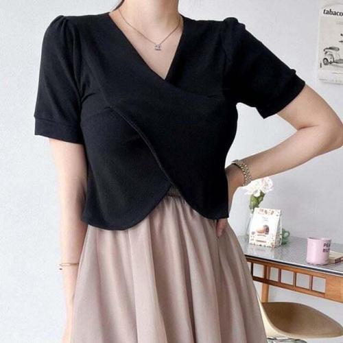 [셀럽하우스]세트 BEEL4701 쉬폰 브이넥 블랙
