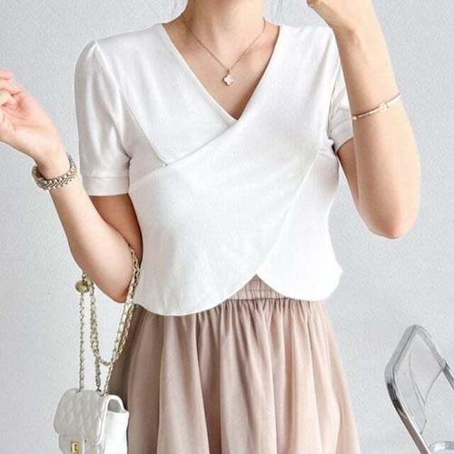 [엄지척]세트 쉬폰 여름티셔츠 블랙 브이넥 여성티셔츠_19660358_667501