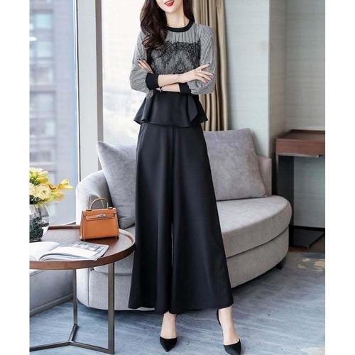 [셀럽하우스]여성 ETBS5308 8부 소매 쉬폰 블라우스 와이드 팬츠 상하 세트