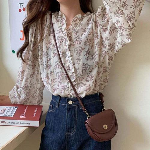 [신상오픈런]여성 플라워 쉬폰 긴팔 블라우스 루즈핏