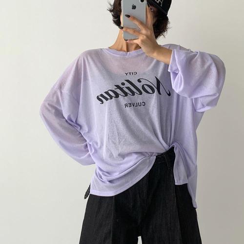 [옷자락] 여자 바캉스룩 비치웨어 시스루 루즈핏 슬릿 티셔츠