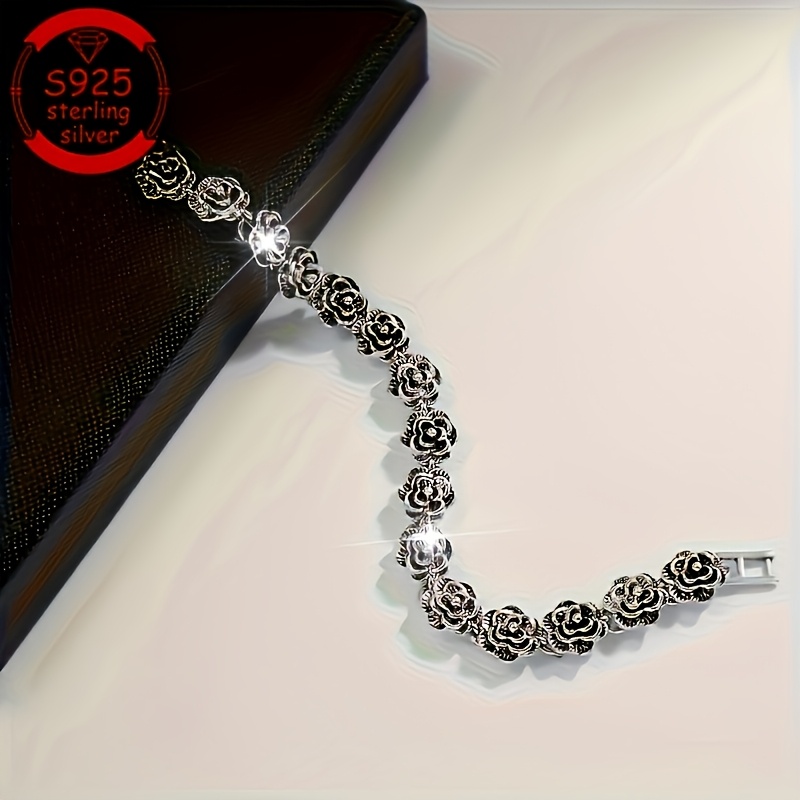 TEMU 실버 여성용 장미 팔찌, 생일, 발렌타인데이, 스승의날, 크리스마스, 새해 선물, 데일리웨어, 휴가, 파티, 결혼식에 적합. 심플하고 우아한 여성 주얼리, 광택 있는 표면