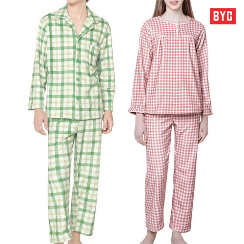 [BYC] 커플 잠옷 세트 가을 겨울 수면 극세사 밍크 기모 순면 긴팔 파자마 홈웨어 바지
