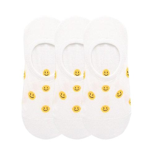 여성용 땡땡이 스마일 페이크삭스 양말 화이트 3켤레 WFHPWAN