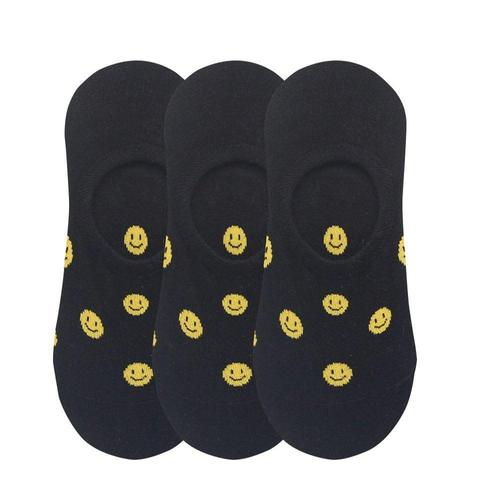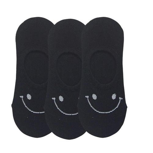 여성용 땡땡이 스마일 페이크삭스 양말 블랙 3켤레 WFHPWAM
