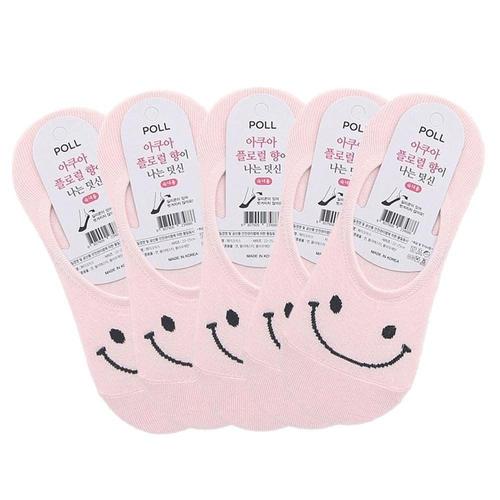 여성용 스마일 아쿠아 향기 덧신 양말 핑크 5켤레 WFHPU63