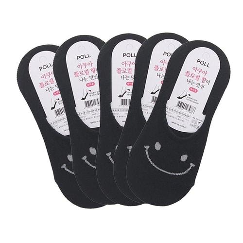 여성용 스마일 아쿠아 향기 덧신 양말 블랙 5켤레 WFHPU62