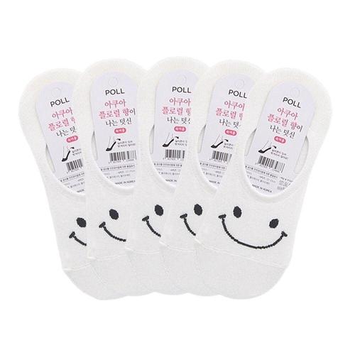 여성용 스마일 아쿠아 향기 덧신 양말 화이트 5켤레 WFHPU60