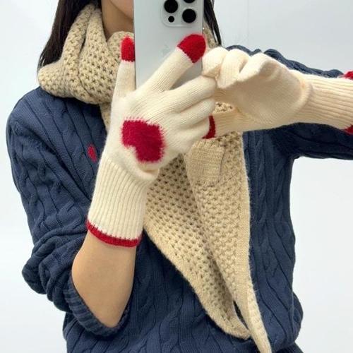 [다잇템][다잇템] 여자 FW 스웨터 귀여운 스마트터치 하트 핑거홀 장갑_19219756_588872