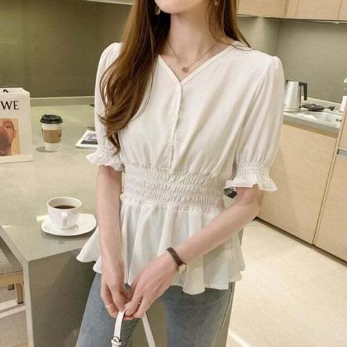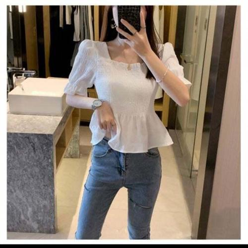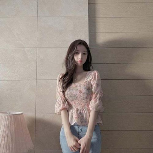 [셀럽하우스]크롭 YOHR6560 블라우스 바디 스모크밴딩 러블리 블라우스