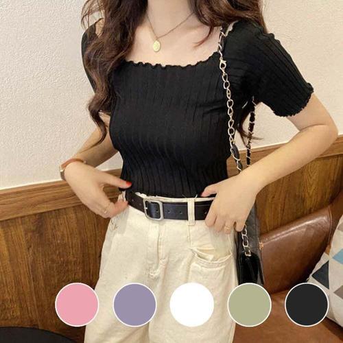 [셀럽하우스]여성 UTAE3776 스모크 밴딩 스타일 크롭탑 골지 상의 티셔츠