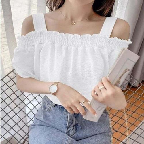 [셀럽하우스]메이비굿 SCYX1856 스모크 오프숄더 의류 블라우스
