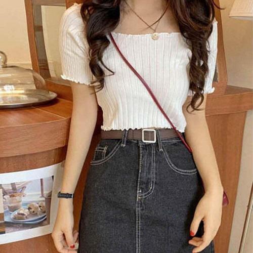 [셀럽하우스]캐주얼 WLQQ7231 여름 밴딩 크롭탑 여성 스모크 반팔 티셔츠