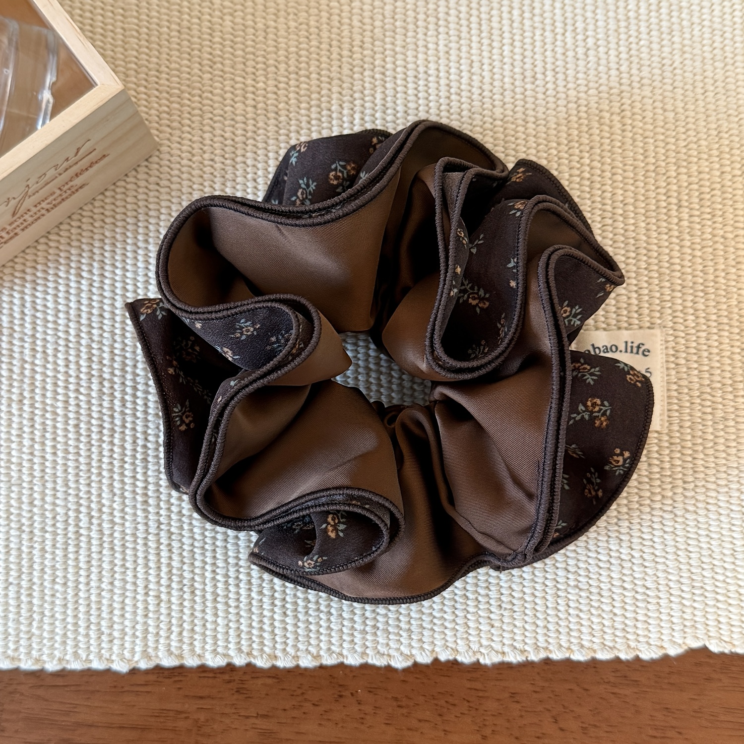 TEMU 한국 스타일 신상 가을/겨울 커피 브라운 소형 꽃무늬 대형 머리끈, 포니테일과 번스에 어울리는 다용도 우아한 헤어 액세서리