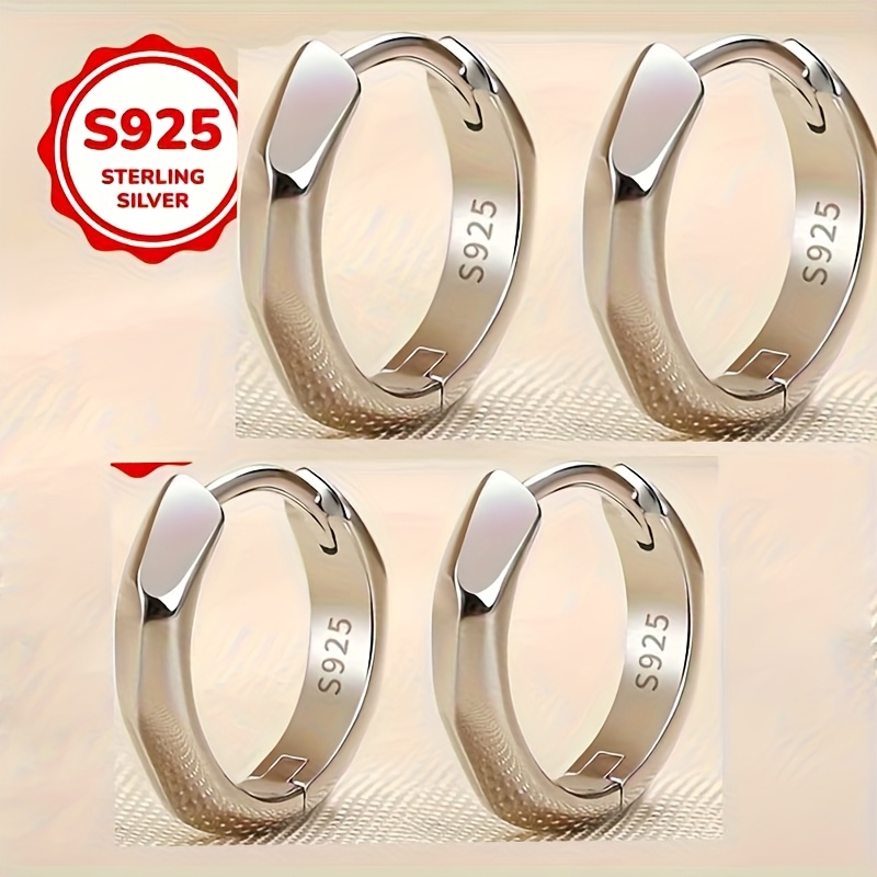 TEMU 여성용 패션 후프 귀걸이 2쌍 스털링 실버 후프 귀걸이 남녀공용 데일리 캐주얼