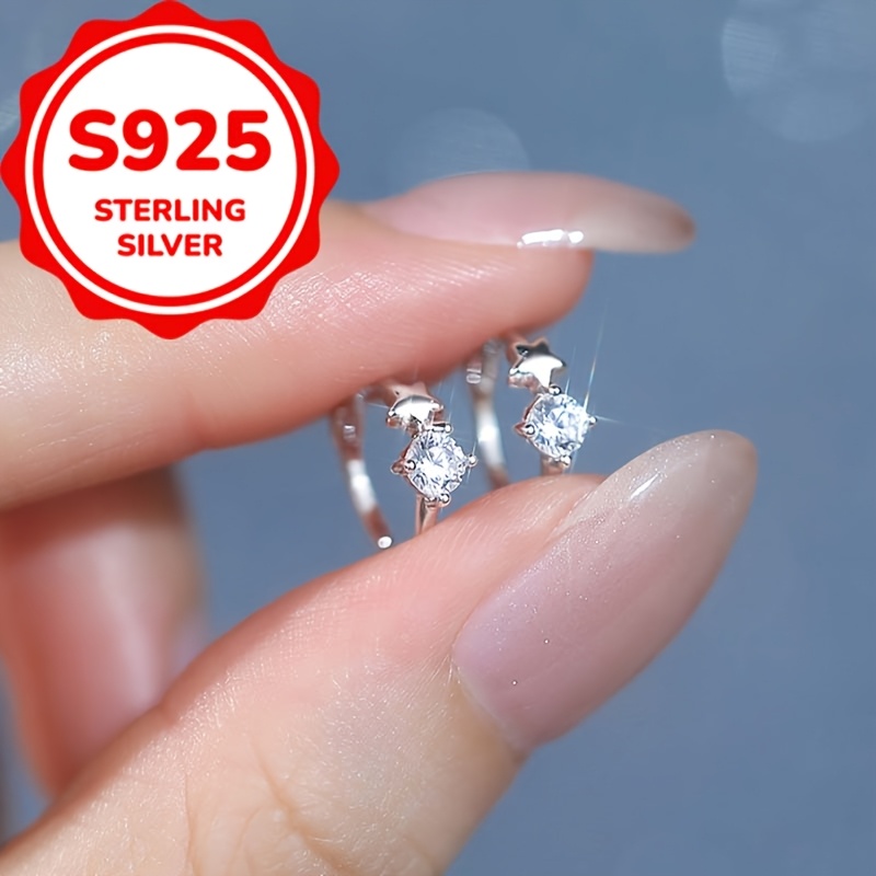 TEMU 925 실버 기하학적 이어커프 - 슈퍼 샤이니 합성 지르코니아 스타 귀걸이, 패셔너블 유니크 디자인 다용도 주얼리