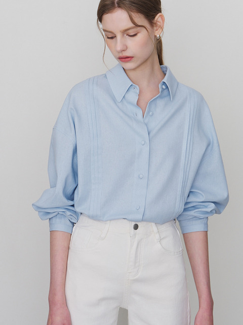 [모멧] 멜르 린넨 핀턱 셔츠 스카이블루