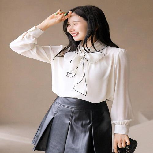 [옷자락]여자 화이트 타이 스카프 정장룩 블라우스