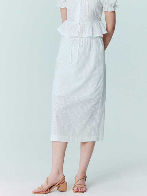 [오프닝선샤인] 플라워 자수 H라인 롱스커트 화이트