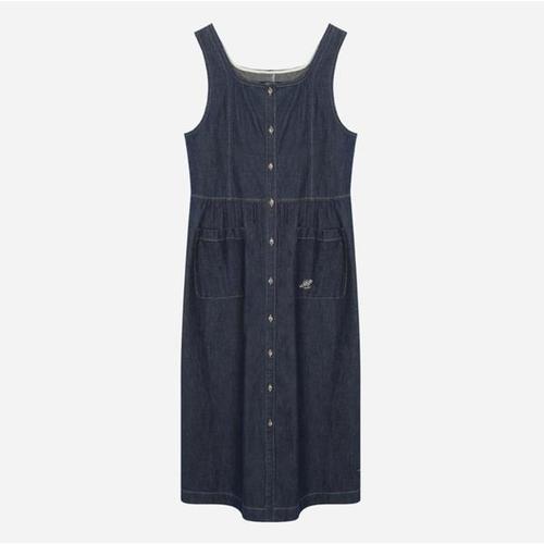 [옷자락]여자 데님원피스 스퀘어넥 멜빵 패치 절개 롱원피스