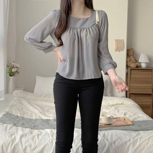 쉬폰 긴팔 블라우스 봄 가을 스퀘어넥 여성 데이트