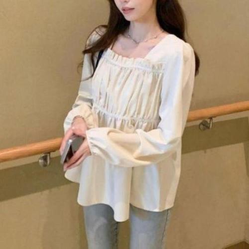 여성 소매 전면 셔링 포인트 스퀘어넥 긴팔 블라우스 got*3199sK