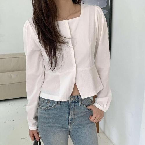 [다잇템][다잇템] 여자 세미크롭 스퀘어넥 민무늬 롱슬리브 면원단 블라우스_23227121_588872
