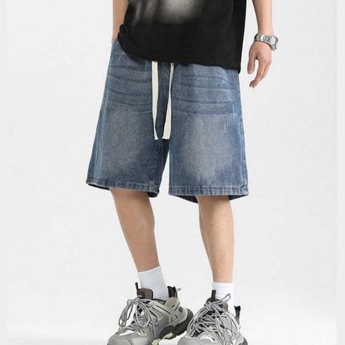 [셀럽하우스]남성 XUCJ6387 여름 스크래치 포인트 워싱 허리밴딩 데님숏팬츠