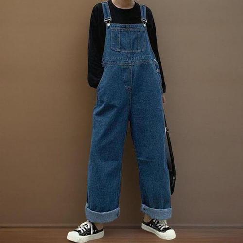[신상오픈런]여성 캐주얼 데님 멜빵 오버롤 와이드 팬츠