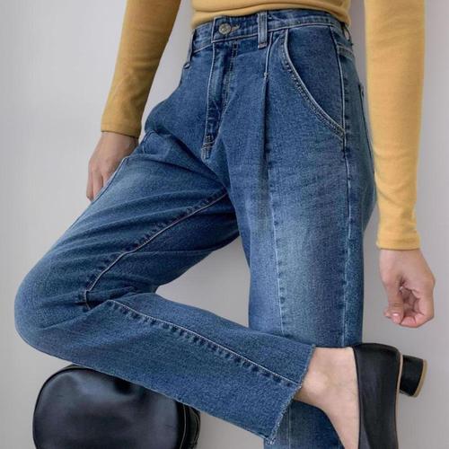 [옷자락]여성 면 청바지 진한색 절개 핀턱 슬림 스키니 데님