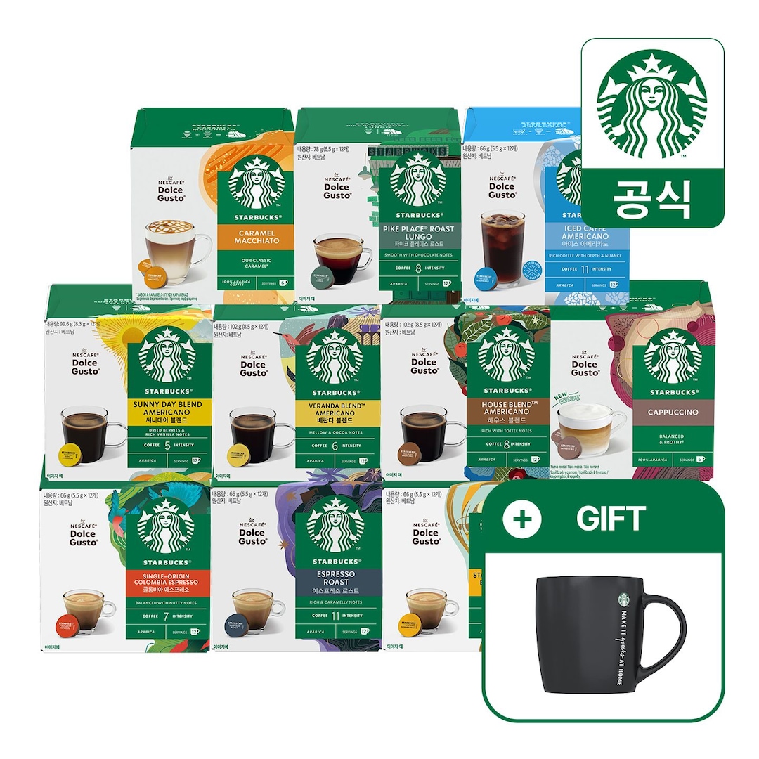 스타벅스 돌체구스토 캡슐커피 블랙 12캡슐 x 1박스 골라담기(+ 5박스 구매 시 블랙 머그 325ml 증정)