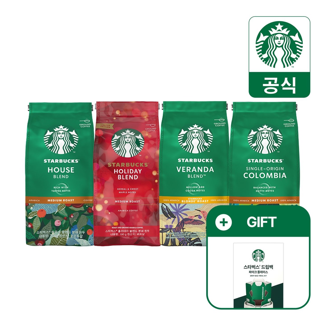 스타벅스 원두 분쇄 4종 / 홀빈 5종 200g 2+2 4개(+ 홀리데이 머그 370ml)