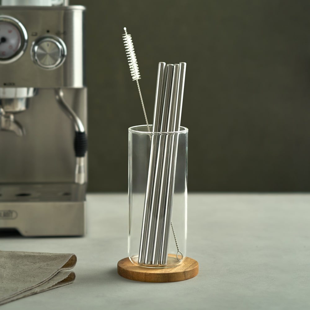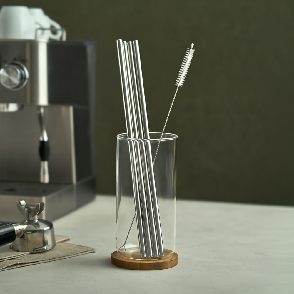 에스테반호프 일자형 스텐 대형빨대4p+세척솔1p세트 텀블러청소 빨대관리