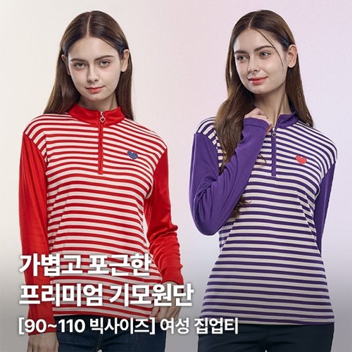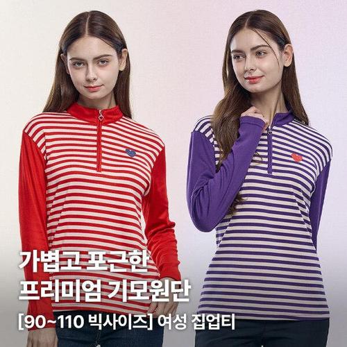 [이지바이] (1+1) 윈터스텔라 여성 겨울 프리미엄 기모 단가라 배색 집업 티셔츠